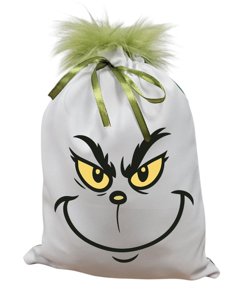 Grincs_01 mikulászsák zöld hátoldallal, műszőrrel