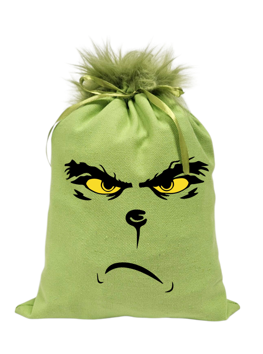 Grincs_01 mikulászsák zöld, műszőrrel - vászon