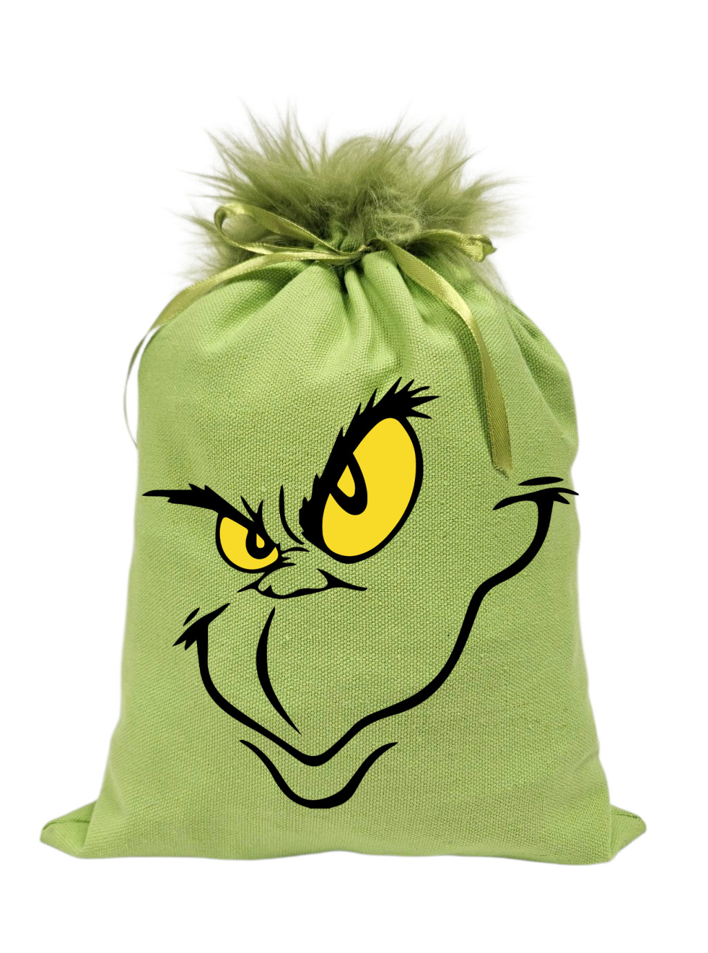 Grincs_04 mikulászsák zöld, műszőrrel - vászon