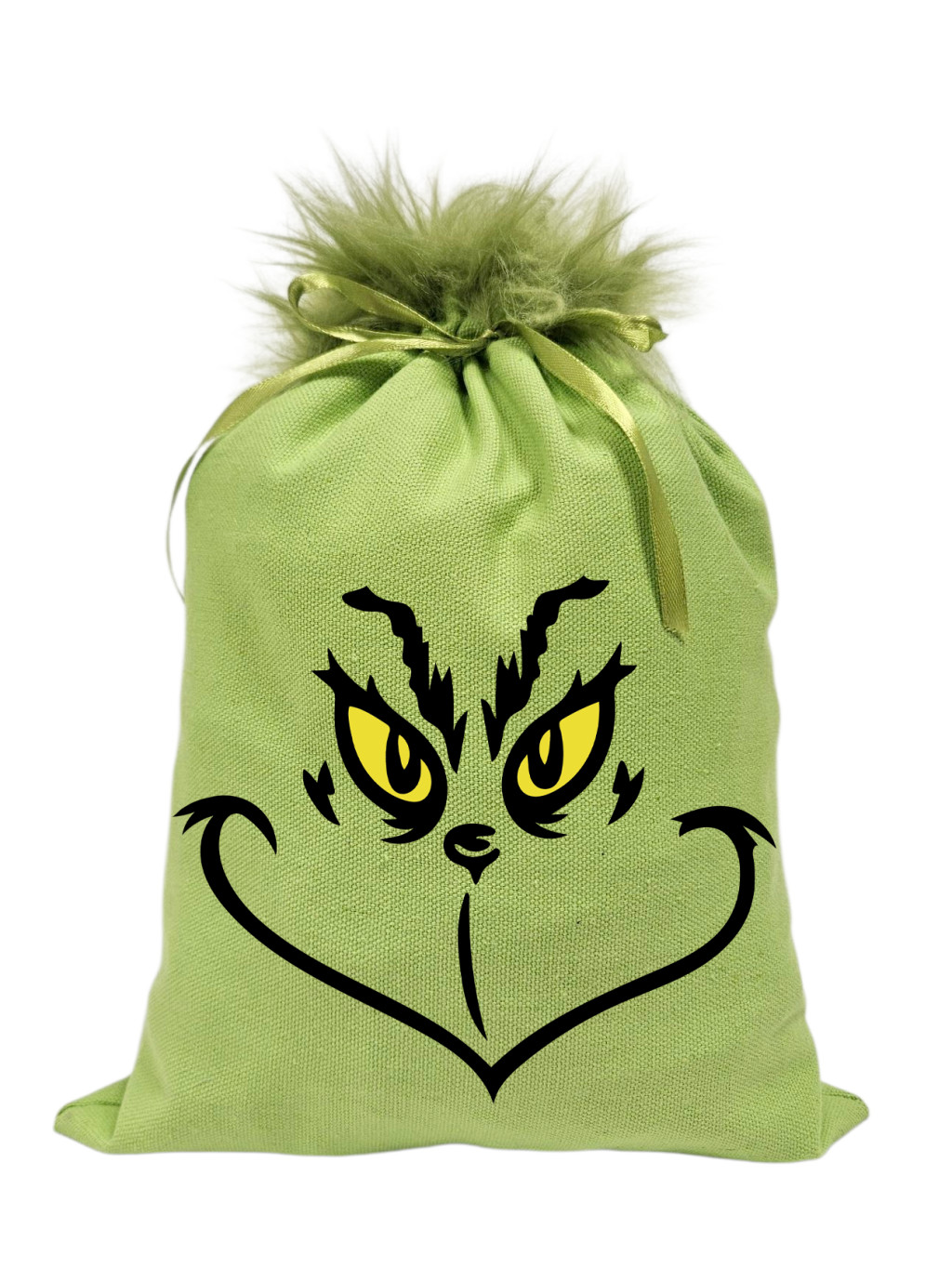 Grincs_05 mikulászsák zöld, műszőrrel - vászon