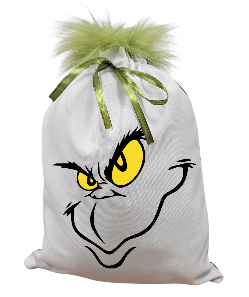 Grincs_06 mikulászsák zöld hátoldallal, műszőrrel