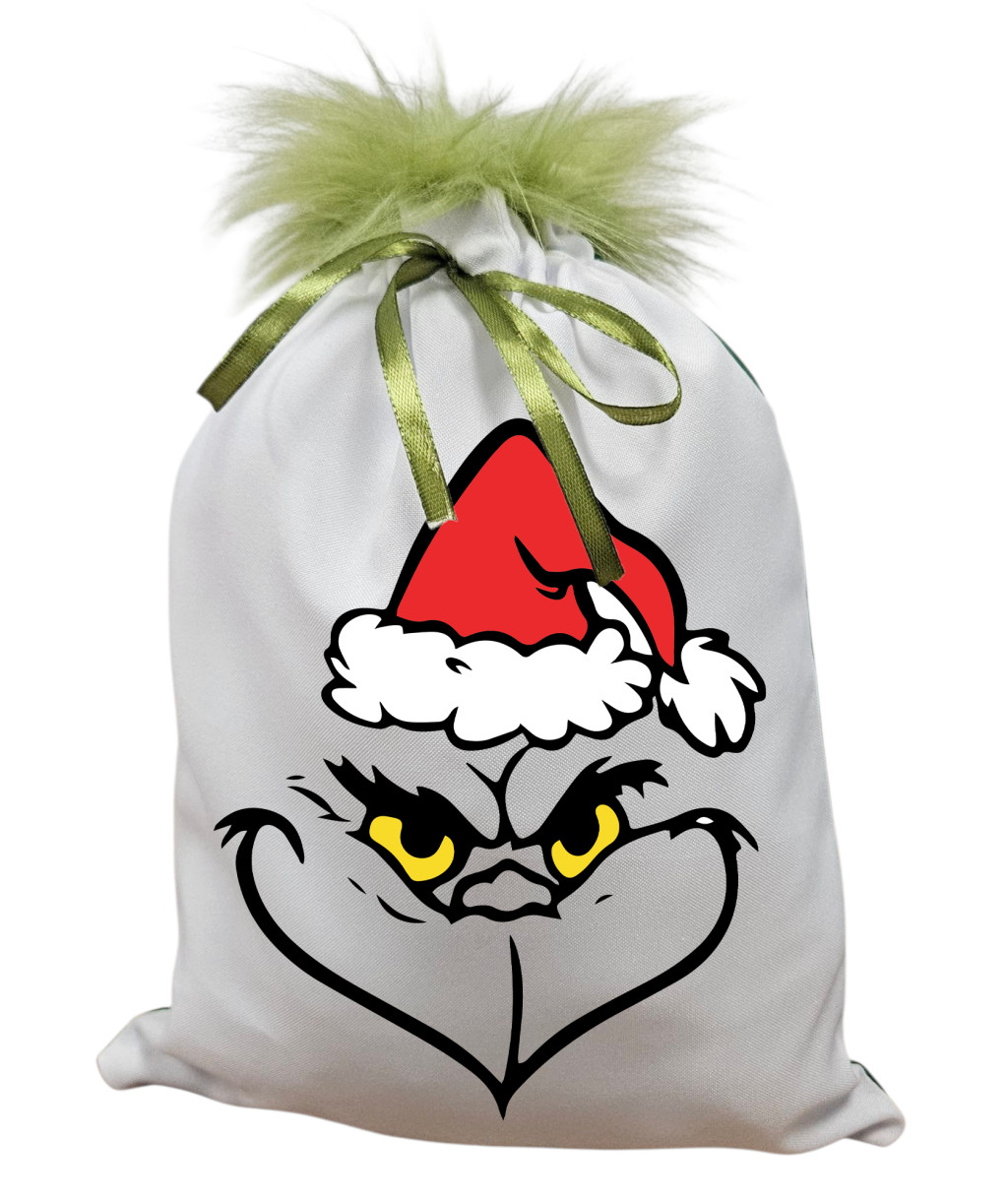 Grincs_08 mikulászsák zöld hátoldallal, műszőrrel